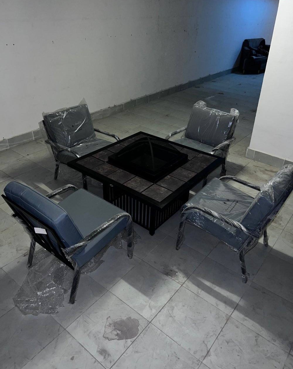 طاولة طعام فخمة صناعة تركية جديدة السعر 430 دينار طاولة غرانيت والقواعد حديد مع كرسي حديد مع حوض للفحم في وسط الطاولة السعر 190 دينار